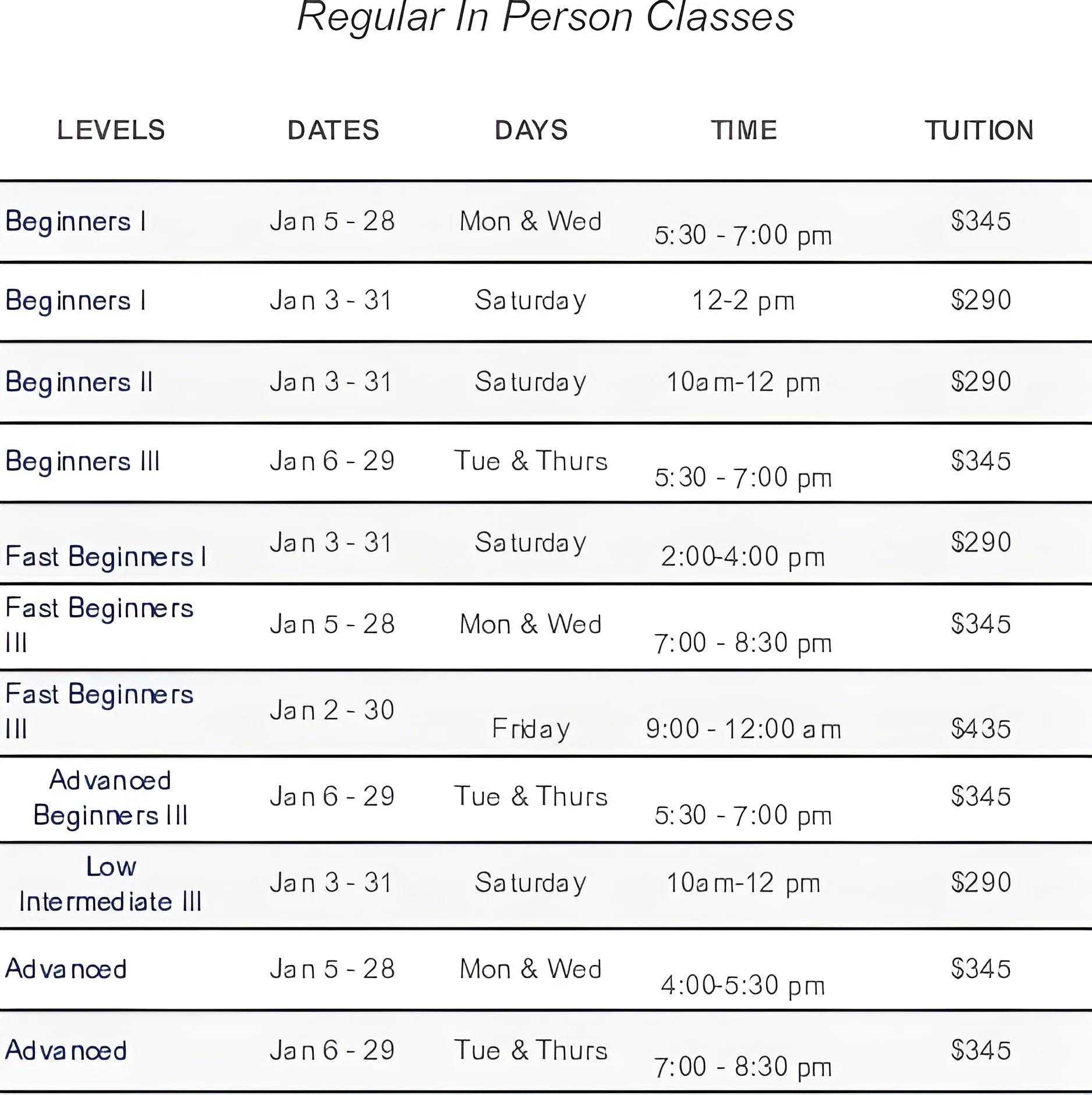 JANUARY No Class on New Years Day (01/01) No Class on New Years Day (01/01) No Class on New Years Day (01/01) FEBRUARY Registration back to calendars